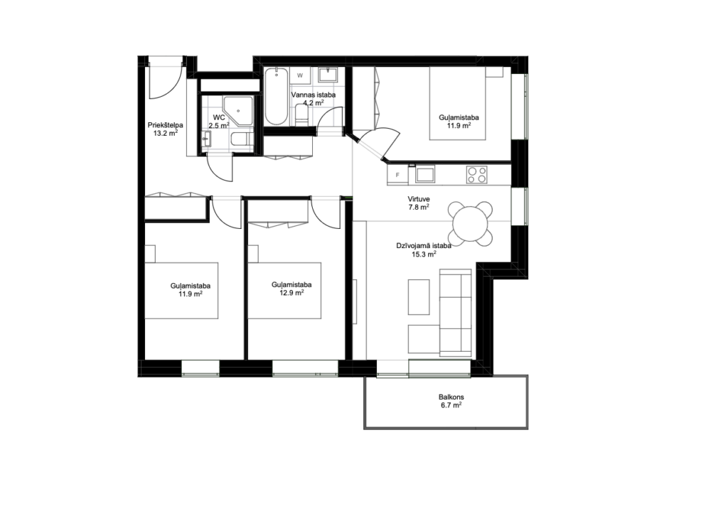 • Dzīvokļa iekšējās durvis – laminētas durvis ar koka karkasu un skaņas izolējošu materiālu.