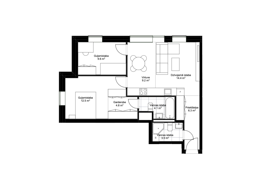 • Dzīvokļa iekšējās durvis – laminētas durvis ar koka karkasu un skaņas izolējošu materiālu.