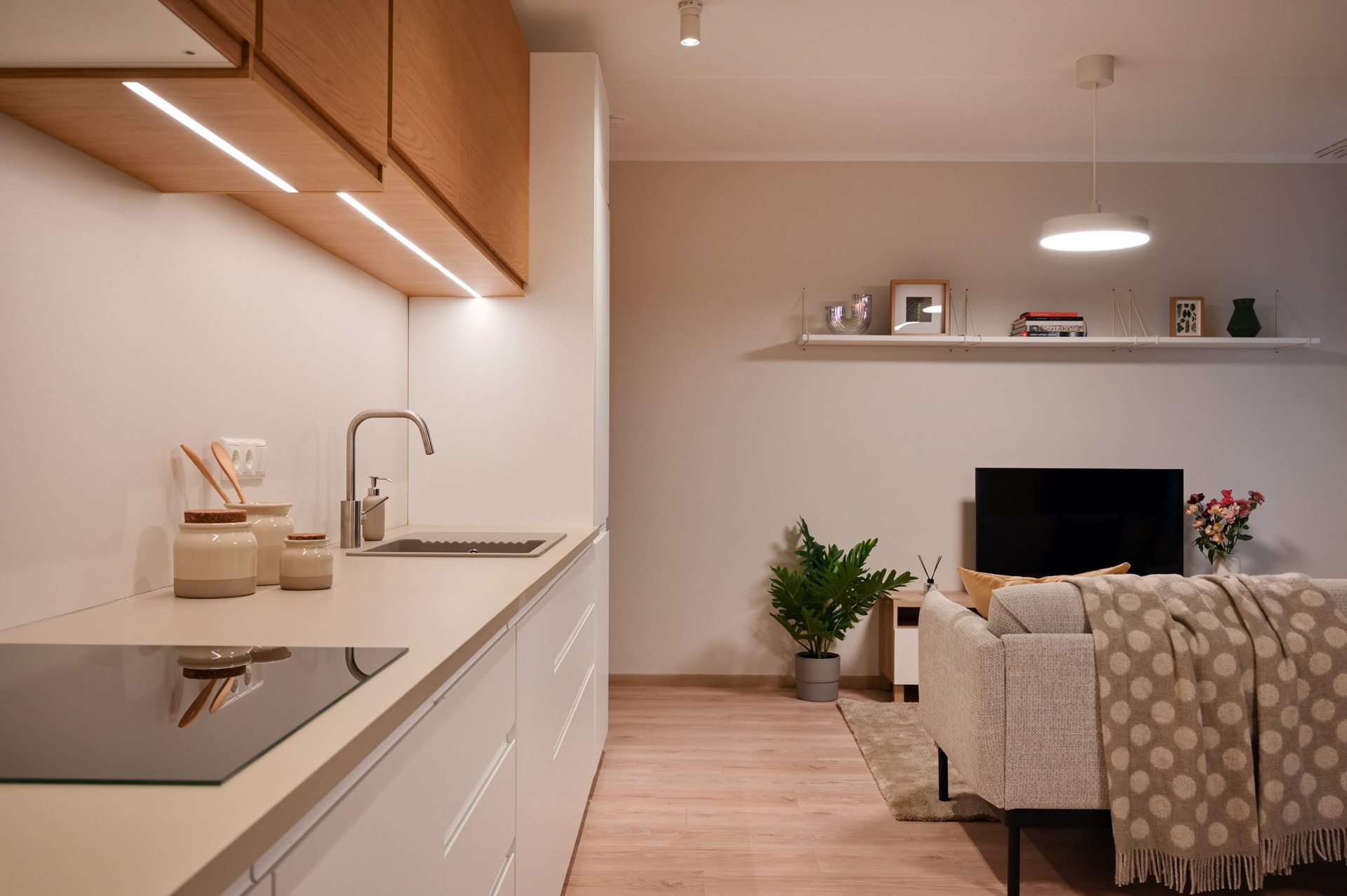 • TV kontaktligzda dzīvojamā istabā, optiskā interneta kabelis priekšnamā;