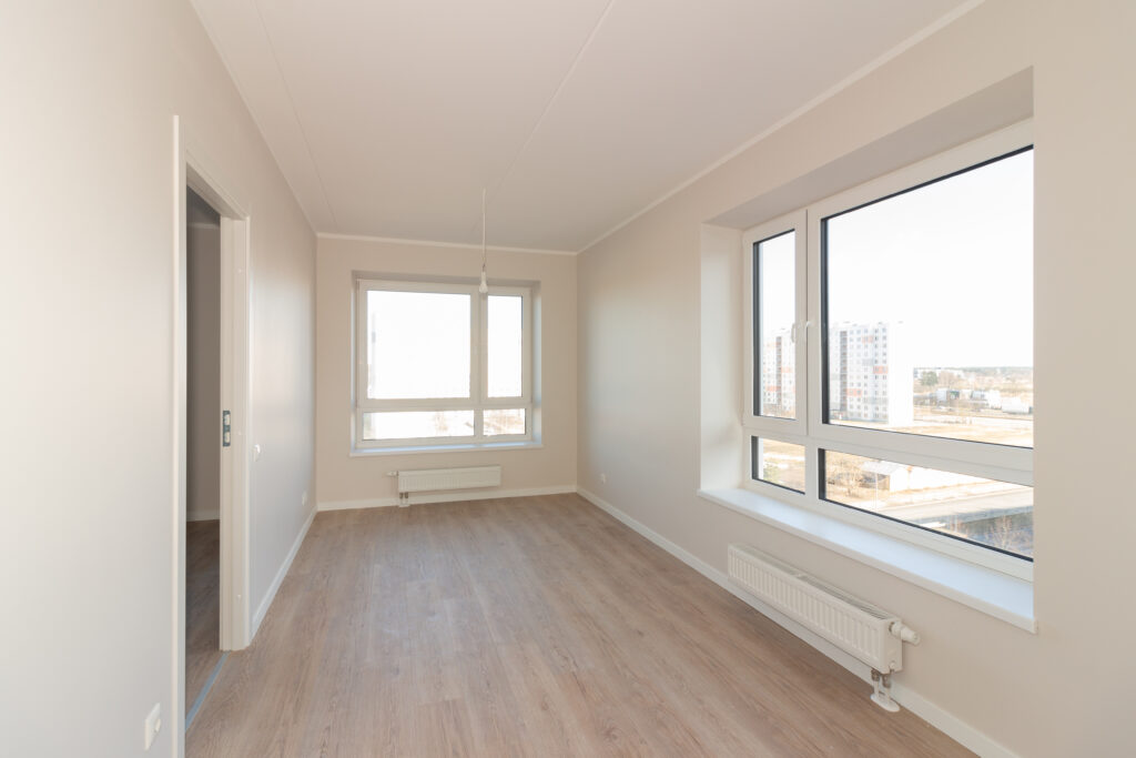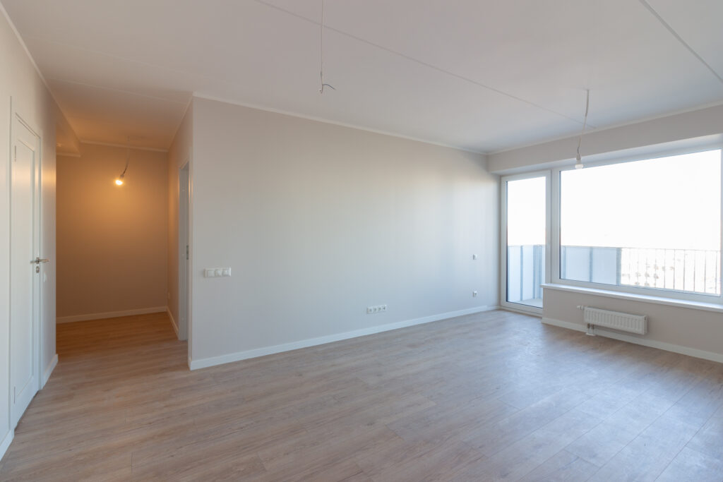• Dzīvojamās istabās, virtuvēs un guļamistabās lamināta grīda segums (32. klase, 8 mm) ar skaņas izolējošo kārtu.