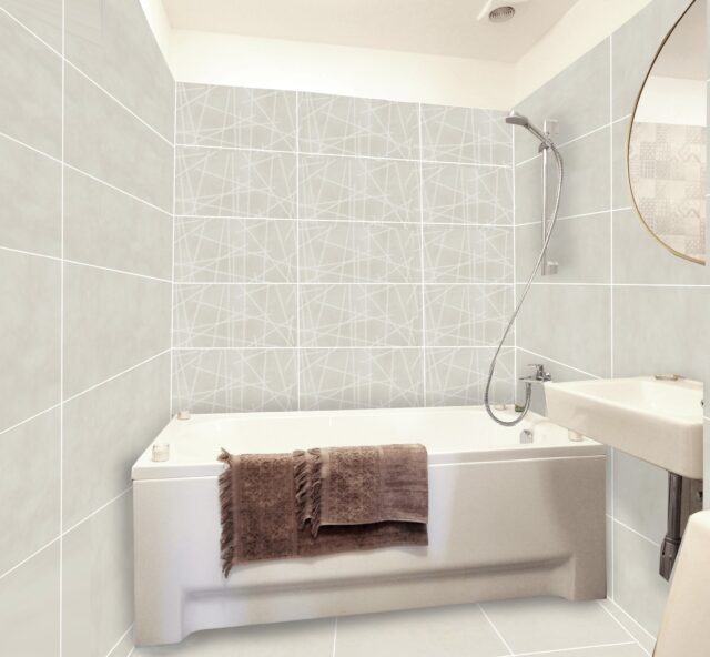 Apdares materiāli tiks pasūtīti no Reaton. Šobrīd ir paredzēts, ka vannas istabā tiks izmantotas 2 veidu flīzes – pamata tonis un viena būs dekora siena. Komplektā būs līdzīga toņa lamināts un grīdlīstes.